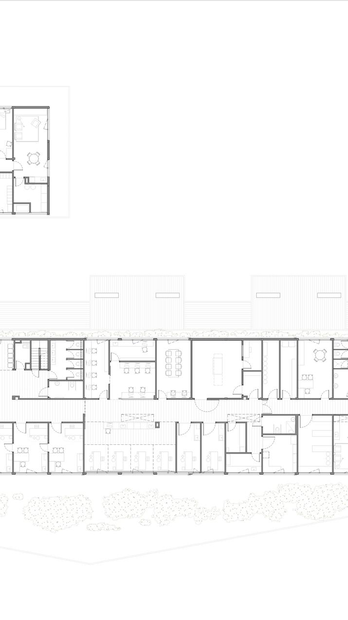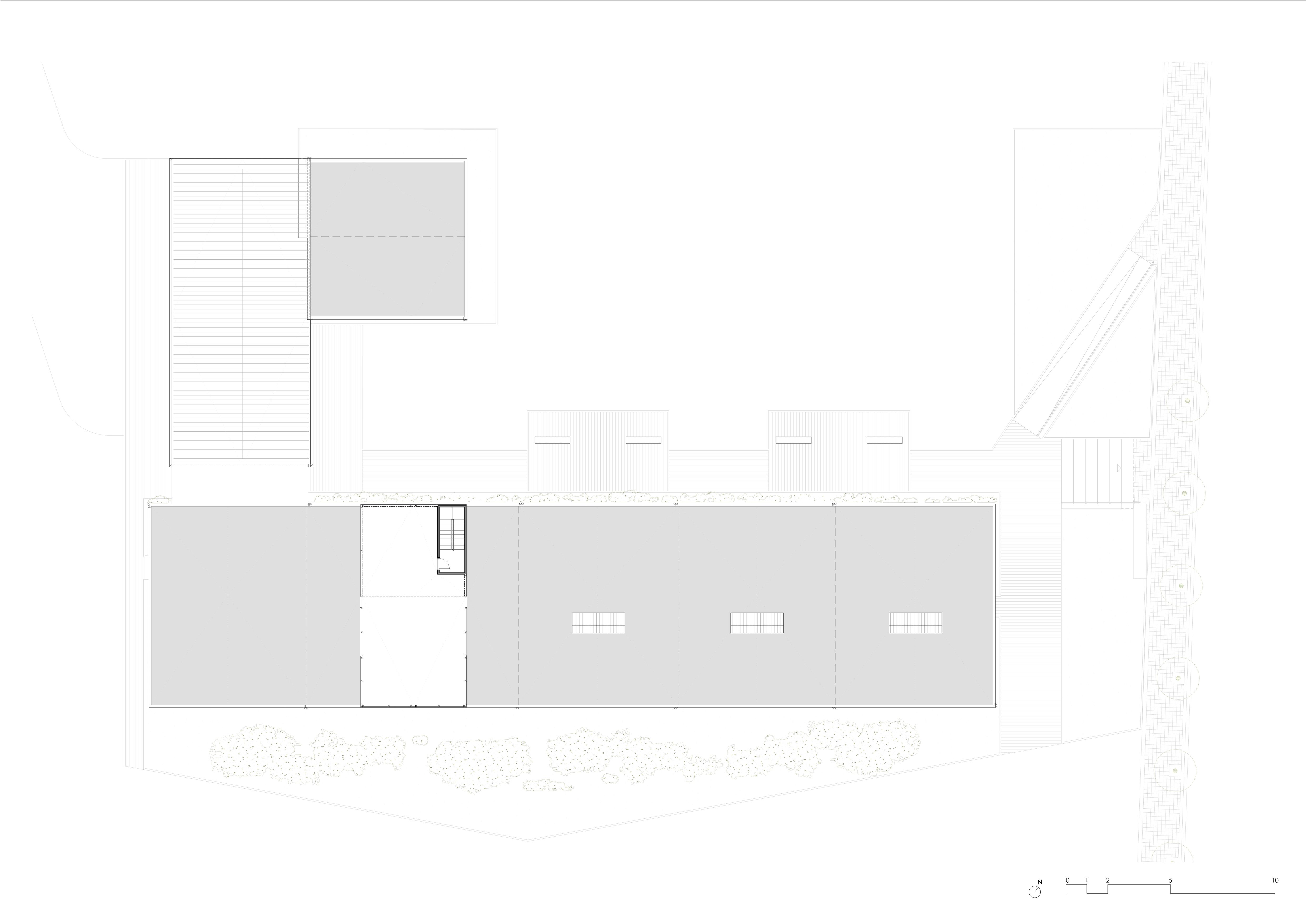 The internal layout responds to a clear logic: a central circulation spine that articulates the spaces on both sides, arranged by degrees of privacy. Natural light and cross ventilation are guaranteed by façade openings and skylights, creating a bright and comfortable environment.