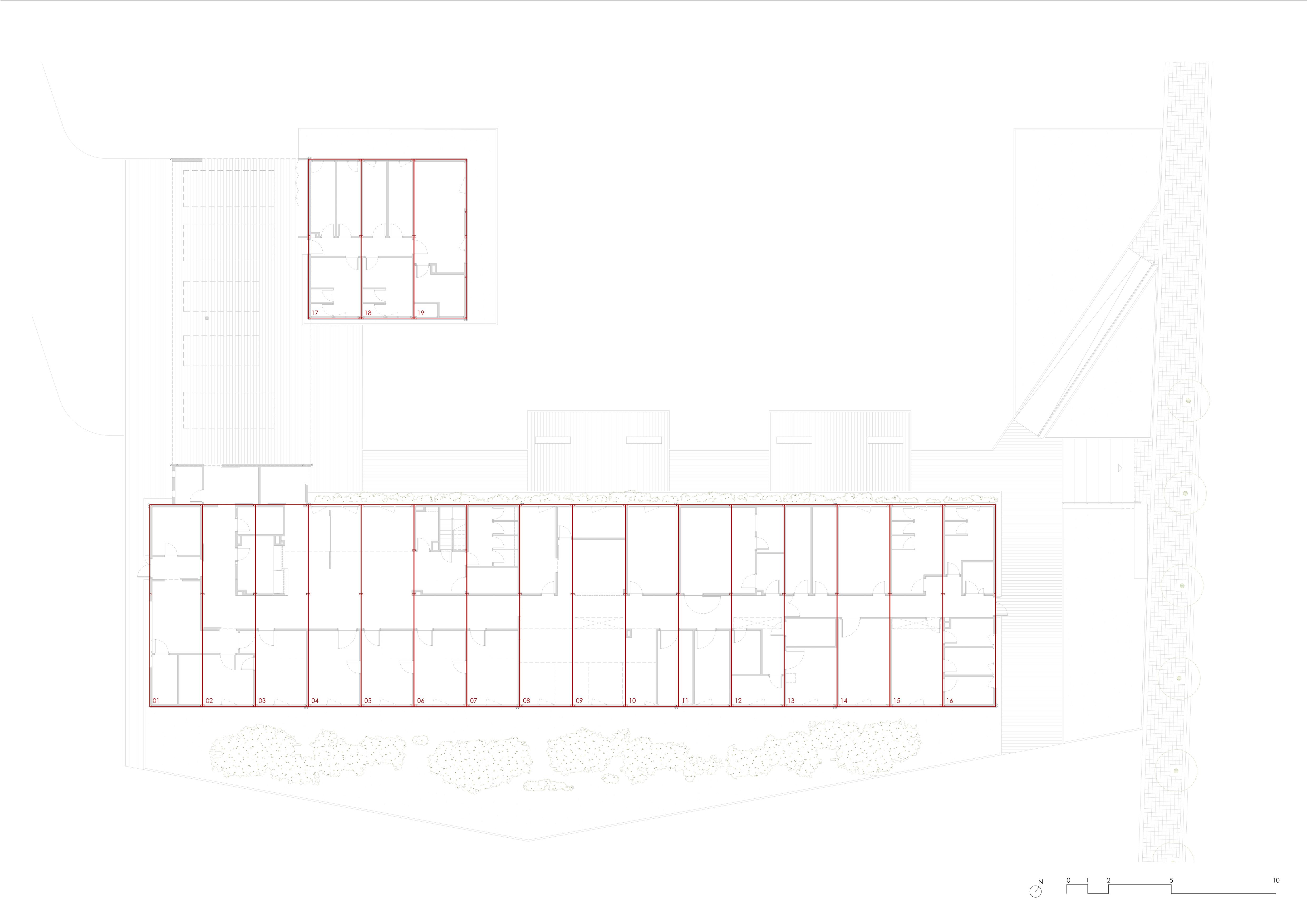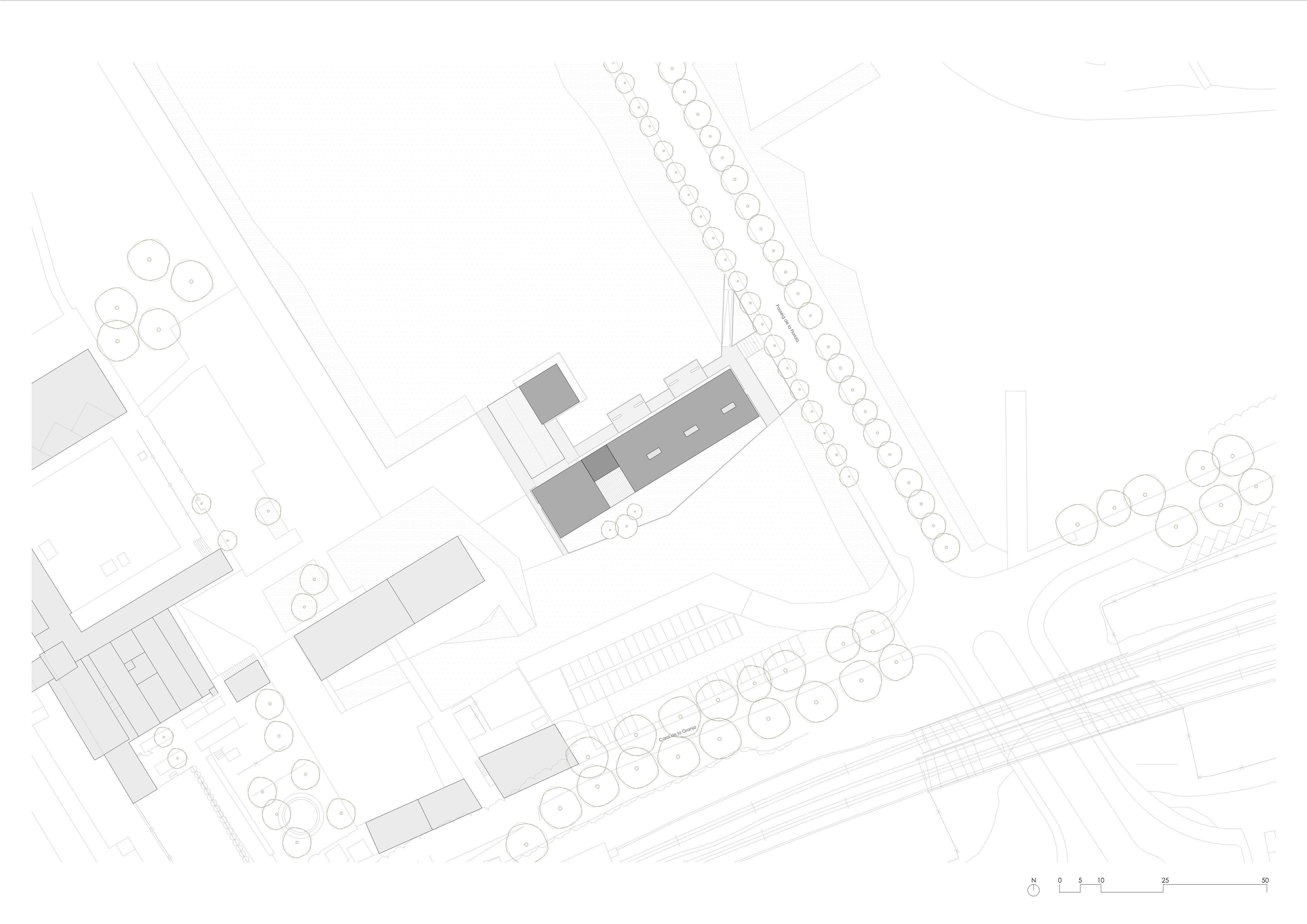 The building is made up of two independent volumes: the main one, located to the south of the plot, houses the Healthcare and Treatment areas; the secondary one, to the north, houses the Emergency Medical Service. A covered porch connects them, acting as an access point, ambulance circulation and logistical link between the two blocks.