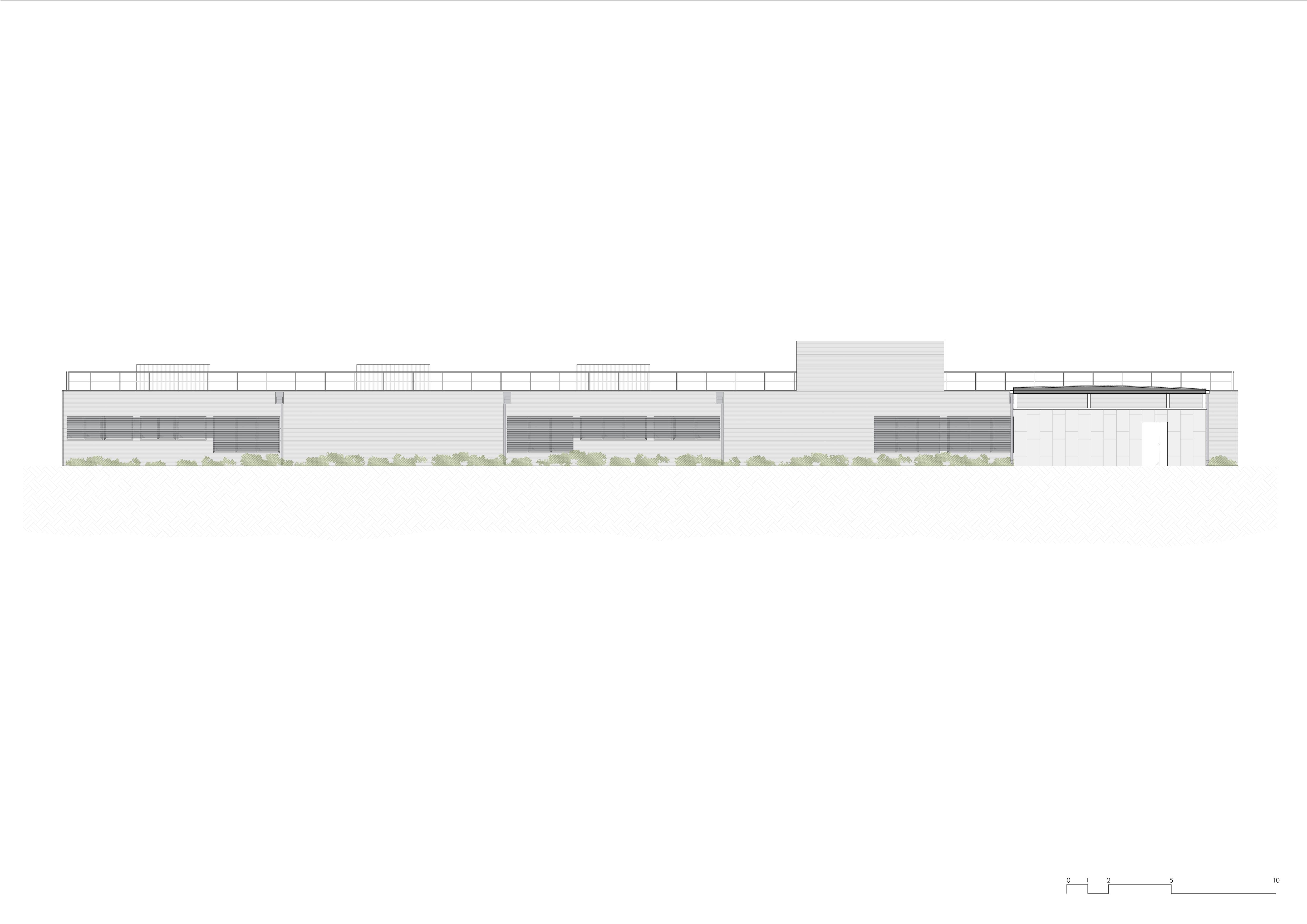 The complex is clad with micro-condulated metal sandwich panels, selected for their thermal behaviour, ease of assembly and sober architectural expression. The joints between modules are resolved on site to achieve a continuous reading. Elements such as perforated solar protection and integrated lighting reinforce the building's identity, generating a clean image that is adaptable to the surrounding light.