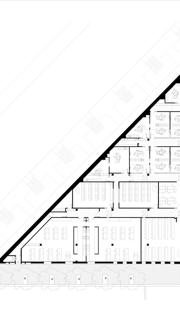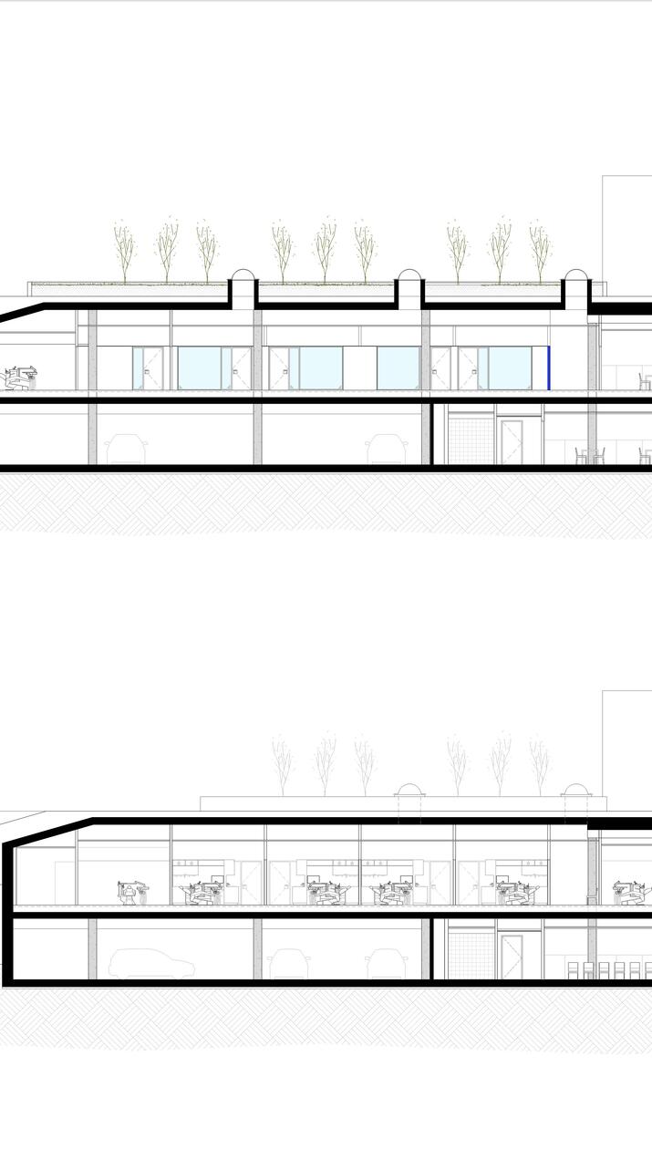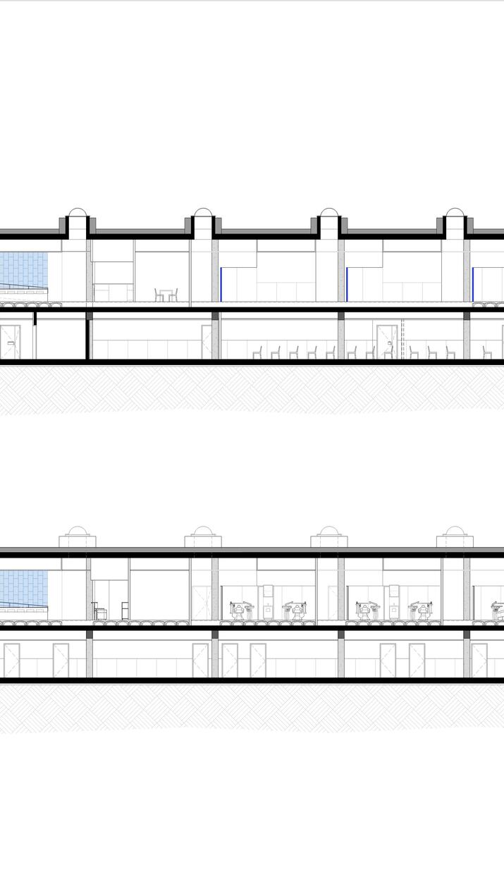 The programmatic layout responds to the rhythm imposed by the structure and the zenithal lighting, giving rise to a balanced and functional sequence of spaces. The result is a technical and efficient environment, where architecture transforms limitations into design opportunities.