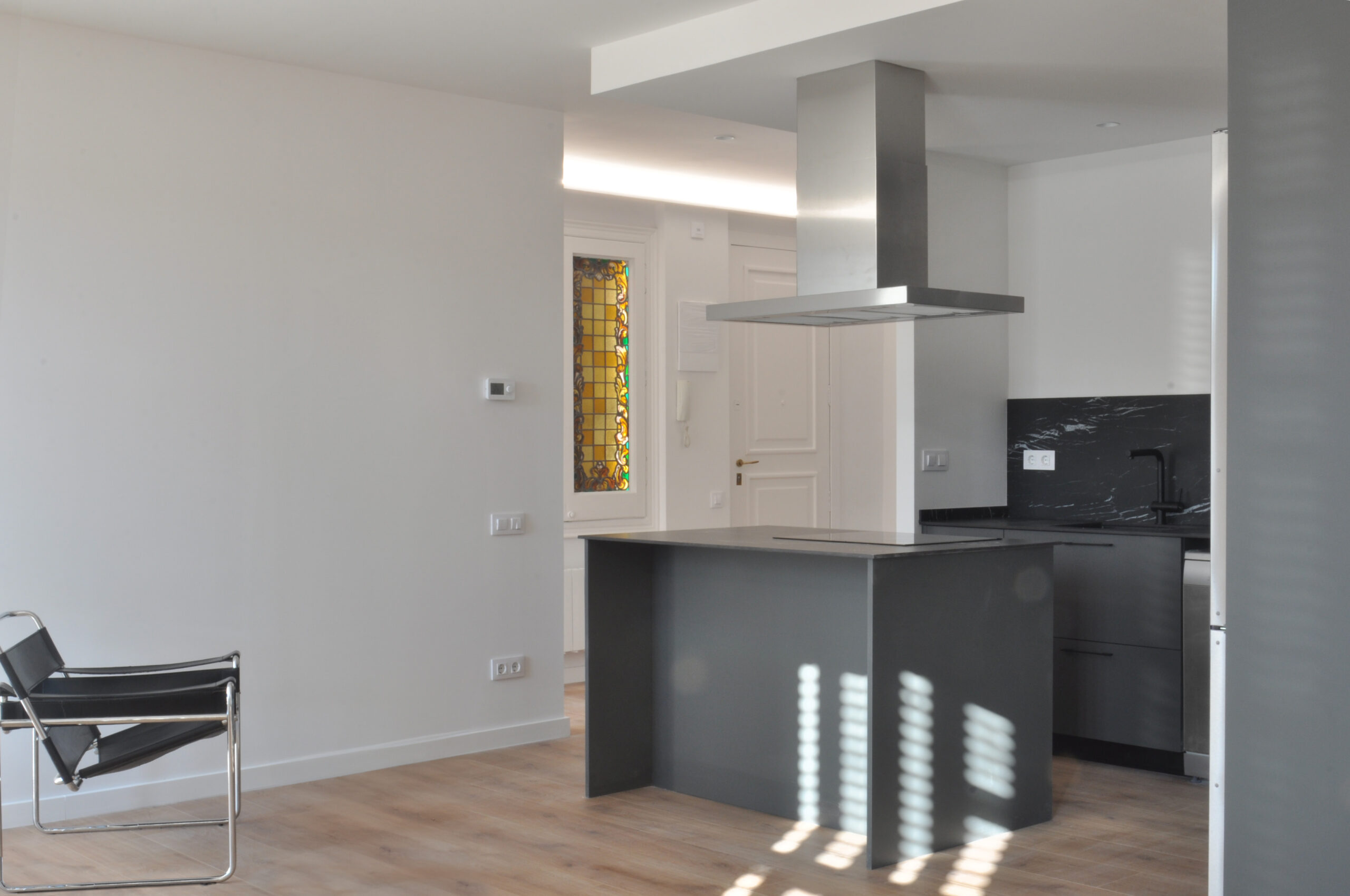 La reforma de esta vivienda de 113 m² en la calle Compte d'Urgell interviene en un piso situado en una finca catalogada del Eixample de Barcelona. El proyecto parte de la voluntad de mejorar la calidad espacial y funcional de la vivienda existente, manteniendo la estructura y los valores tipológicos, pero replanteando su organización interior.