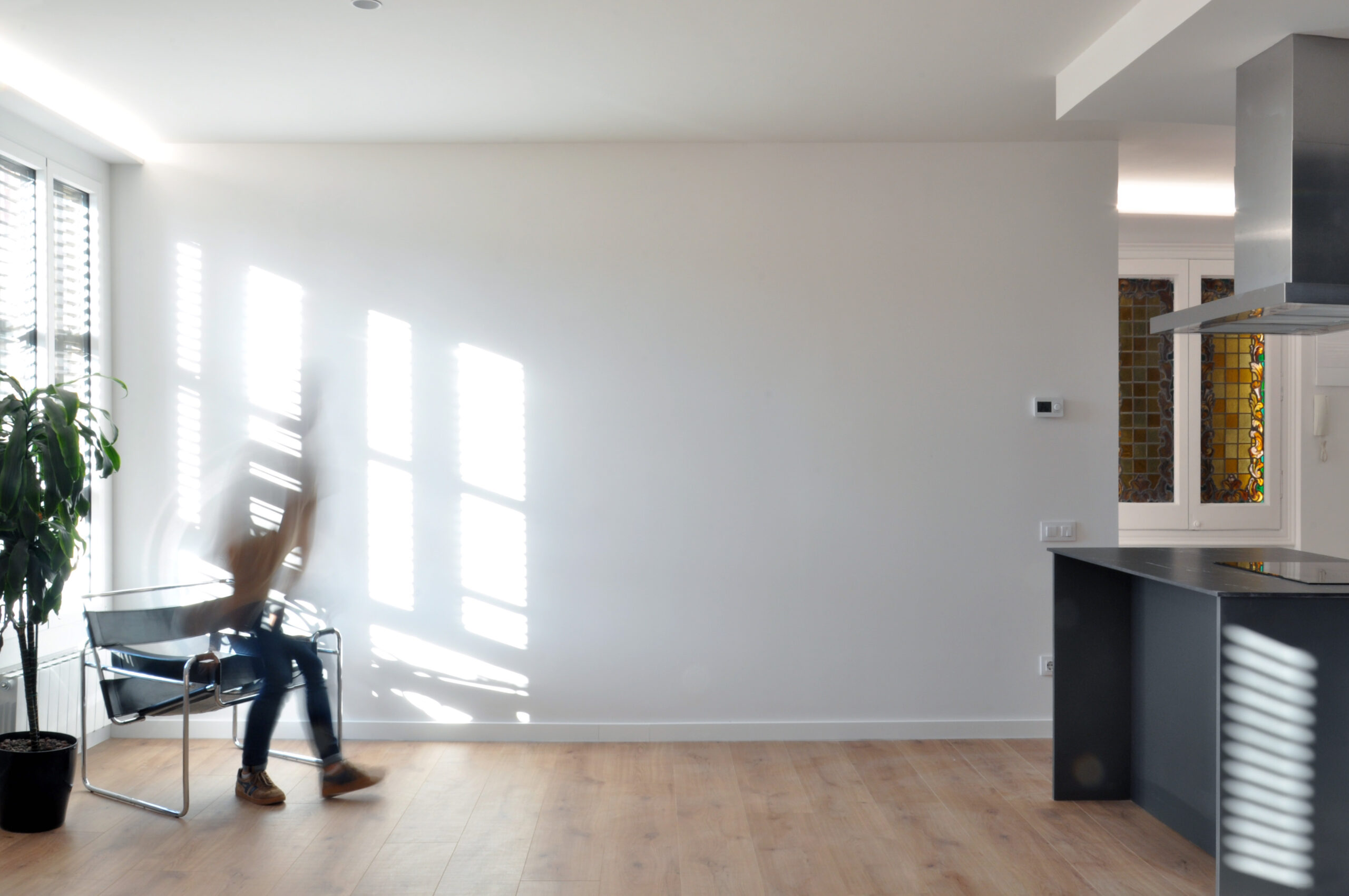 El proyecto parte de un piso del Eixample con una distribución tradicional, basada en pasillos largos y espacios excesivamente compartimentados. La estrategia consiste en reinterpretar esta tipología para adaptarla a las necesidades actuales, reorganizando los usos sin alterar la estructura esencial de la vivienda y potenciando sus cualidades originales.